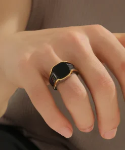 Make a bold impression with the Exclusive Golden Midnight Inlay Ring, crafted for men who appreciate luxury and individuality. Featuring a sleek golden band with a striking midnight black inlay, this ring offers the perfect balance of elegance and modern style. Durable and eye-catching, it’s an accessory that elevates any outfit—whether formal or casual.