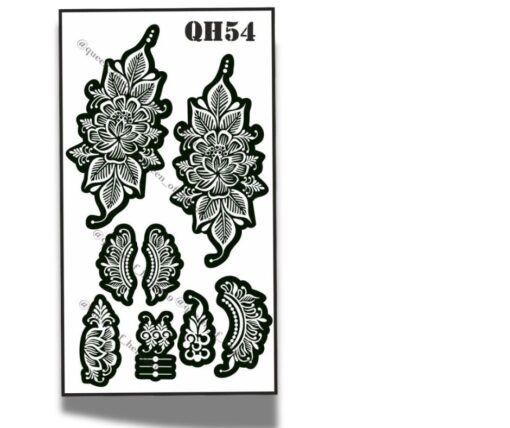Discover effortless, stunning henna designs with our QH 54 temporary tattoo stencils. Perfect for those who want to experiment with beautiful body art without the long-term commitment, these stencils make it easy to create intricate patterns on your hands, feet, arms, and more.